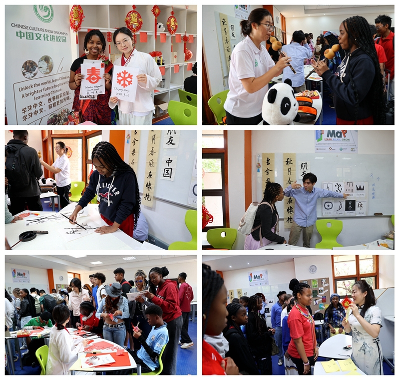 Maru-A-Pula学校外联事务主管塞琳·马蒂(Celine Matthee)亲临各展区,参与互动体验,感受书法墨韵,对活动给予高度评价。她表示:“今天的现场氛围令人难忘,孩子们眼中闪烁着好奇与喜悦的光芒,这正是一堂生动而深刻的文化交流课。”